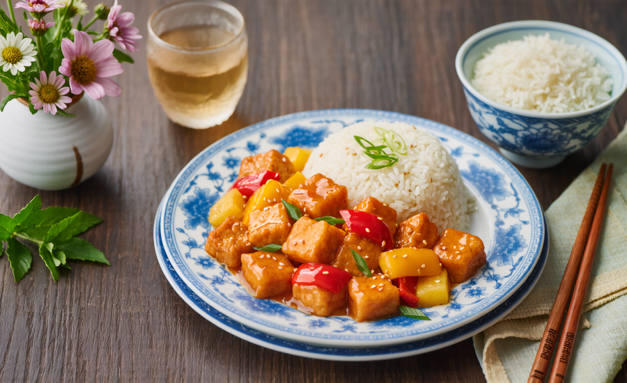 Knuspriger Tofu süß-sauer mit Paprika & Ananas (vegan)