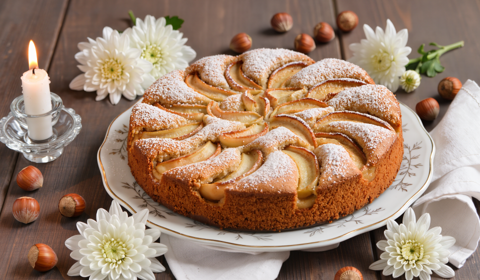 Veganer gedeckter Schokoladen-Nuss-Apfelkuchen
