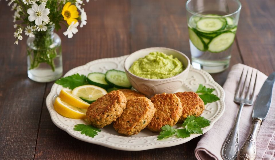 High-Protein Linsentaler mit Avocado- oder Minz-Dip (vegan)
