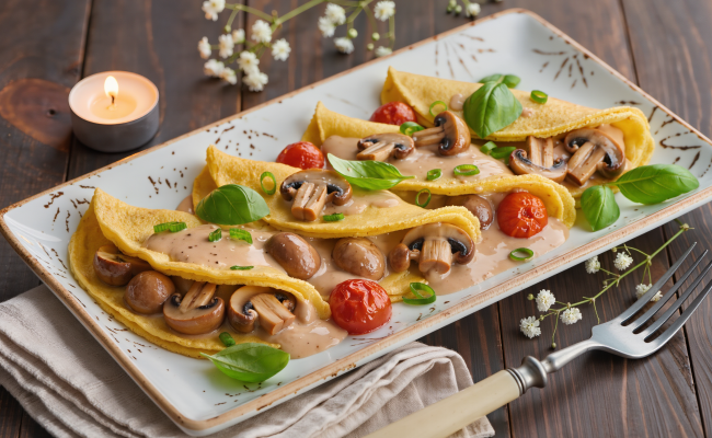 Maispfannkuchen mit Gemüse-Pilzragout