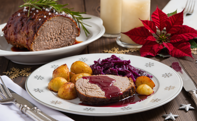 Veganer Festtagsbraten mit herzhafter Rotwein-Sauce