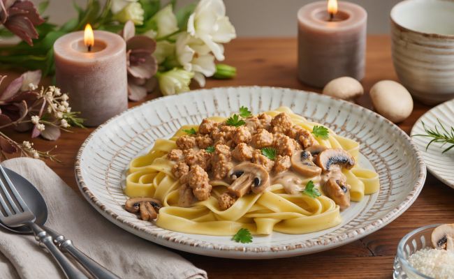 Veganes Rahm-Geschnetzeltes mit Pilzen