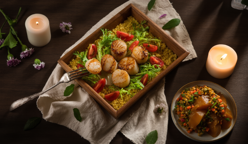 Den geschmorten Rettich zusammen mit dem frischen, würzigen Linsensalat anrichten – lauwarm oder kalt genießen.