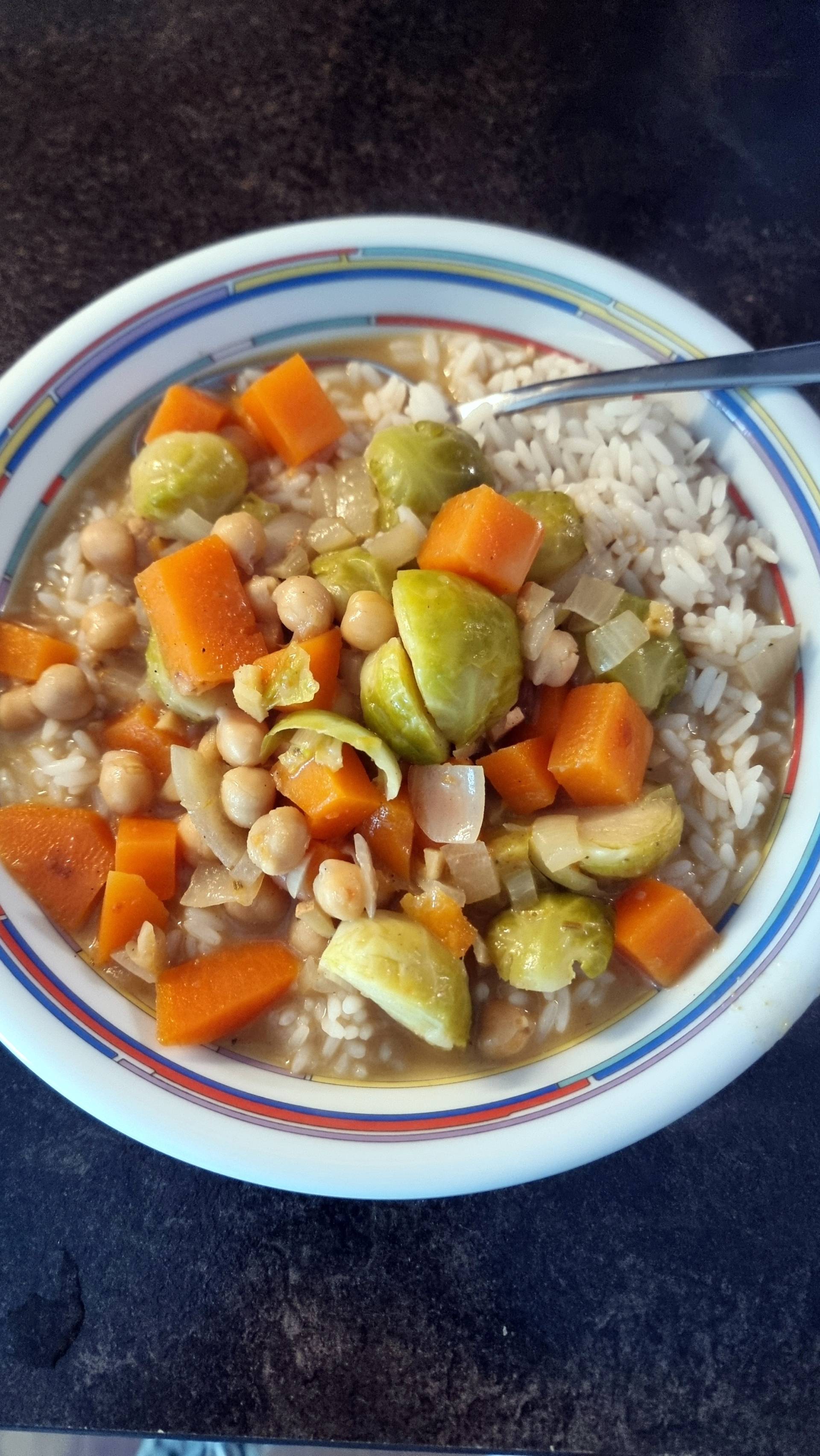 - Das Rosenkohl-Curry mit Reis servieren und genießen.