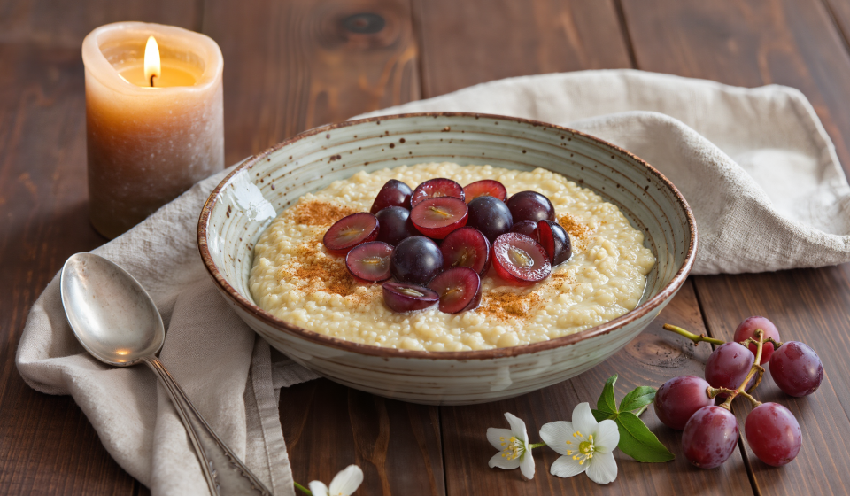 Amaranth-Pudding mit süßen Trauben