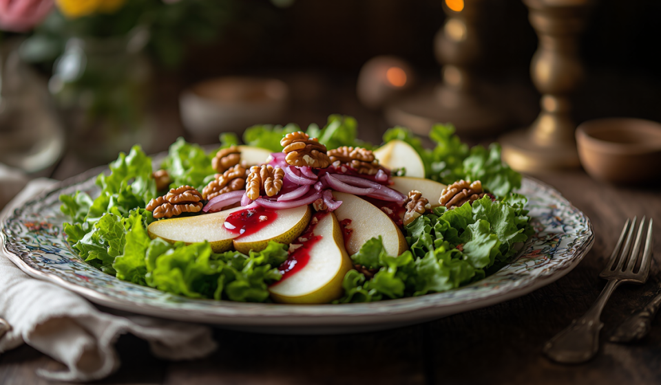 Feldsalat mit karamellisierten Walnüssen und Himbeer-Dressing (vegan)