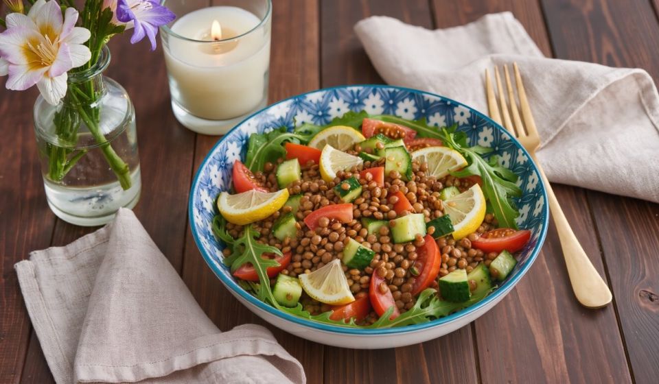 Frischer Linsensalat mit Zitrone & Rucola (vegan)