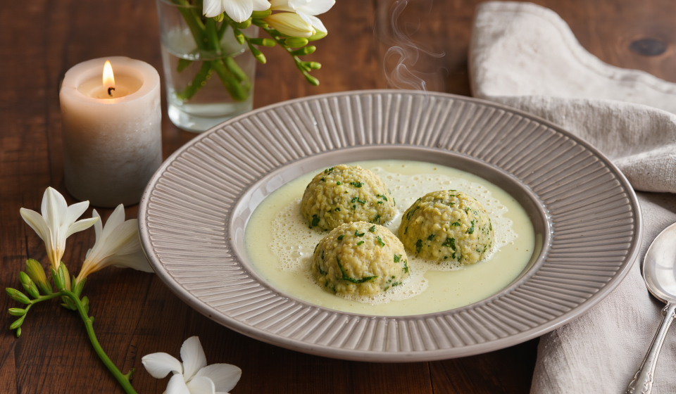 Kokos-Zitronen-Suppe mit Kartoffel-Spinat-Nocken