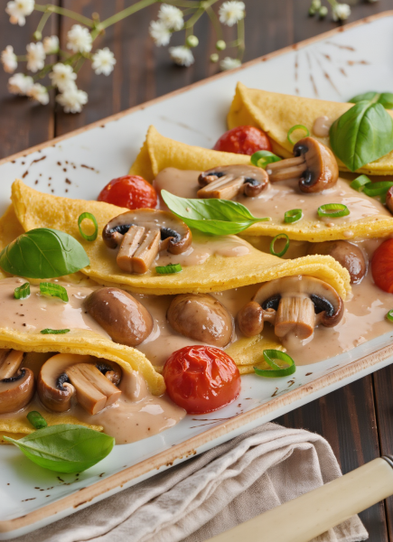 Pflanzenmilch und Mehl unterheben. Mit Muskat, Salz und Pfeffer abschmecken und die Masse vollständig abkühlen lassen.