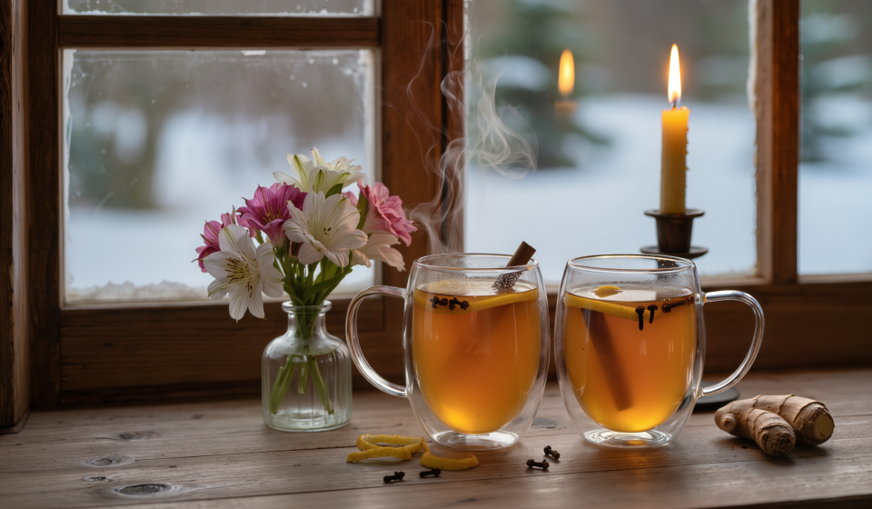 Add 2 cloves and some cinnamon to each glass. Stir gently and let infuse for 3–5 minutes.