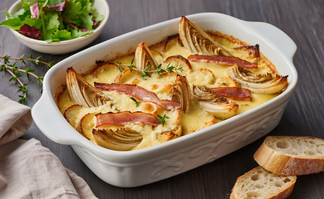 Baked Chicory with Rosemary Potatoes & Smoky Tofu (Vegan)