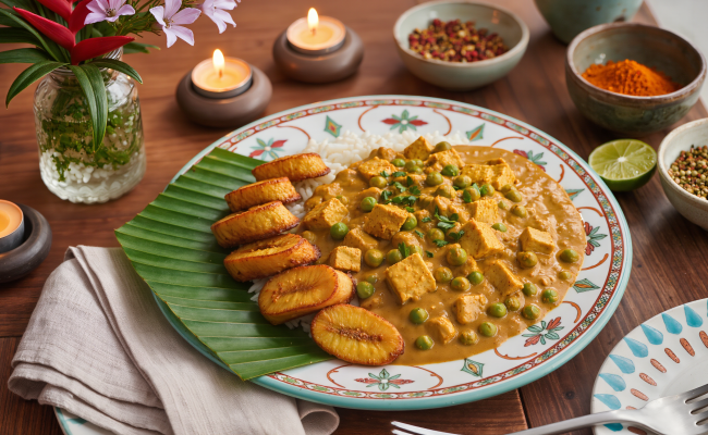 Tofu Curry from the Spice Island of Grenada with Fried Plantains