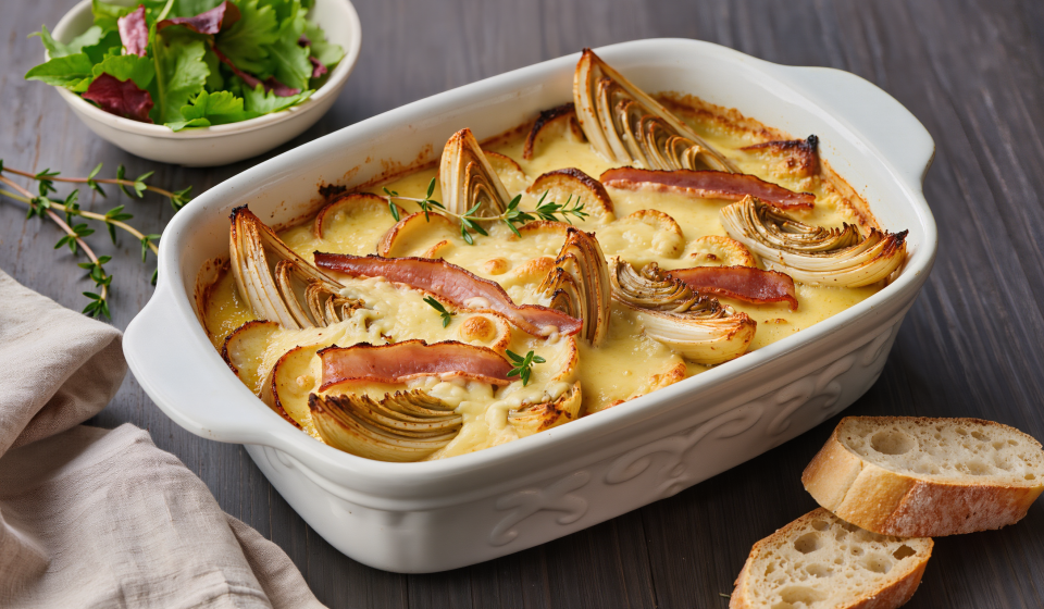 Baked Chicory with Rosemary Potatoes & Smoky Tofu (Vegan)