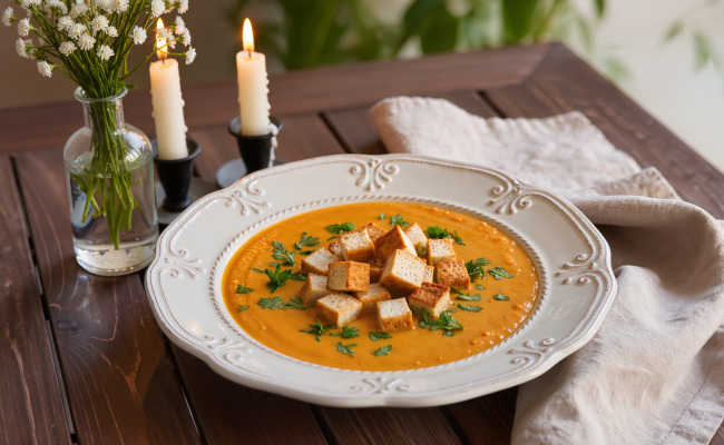 Vegan Carrot Soup with Crispy Tofu